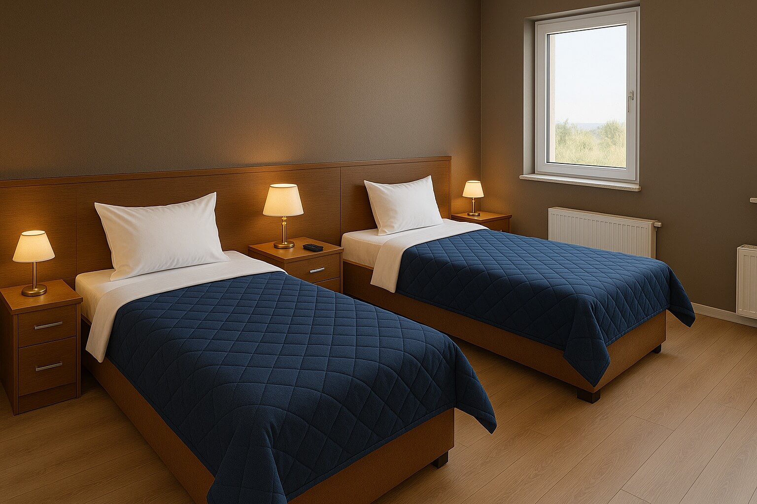 2 ve 4 kişilik modern odalar, ortopedik yataklar, 24 saat sıcak su ve hızlı internet.